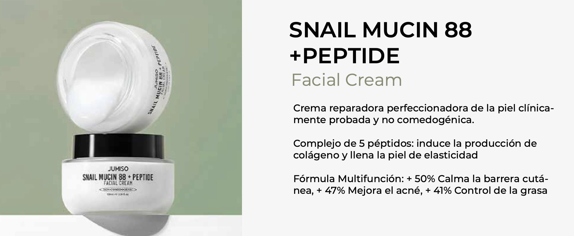 Complejo avanzado de 5 péptidos: cuenta con tripéptido de cobre 1, palmitoil pentapéptido-4, acetil hexapéptido-8, palmitoil tripeptide-1 y palmitoil tetrapéptido-7 para facilitar la producción de colágeno y restaurar la piel.